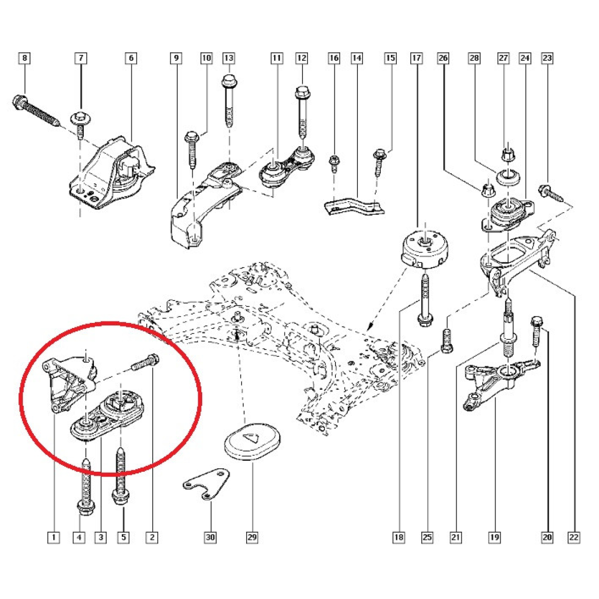 Опора двигуна нижня Renault Megane II 02- 2.0i+1.9 dci+1.5 dci. Французький виробник Hutchinson H532C62