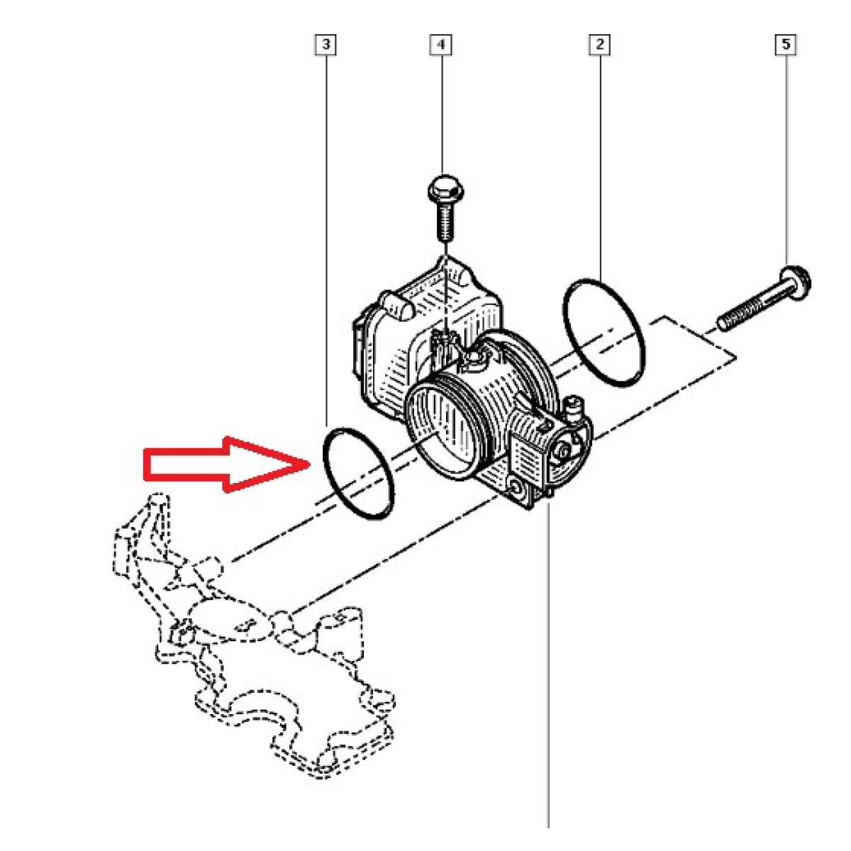 Прокладка на дросельної заслінки -тонка для автомобілів Renault Megane II (Рено Меган 2) з 2002 по 2008 - оснащеного бензиновими двигунами 1.4 i 16V (K4J).